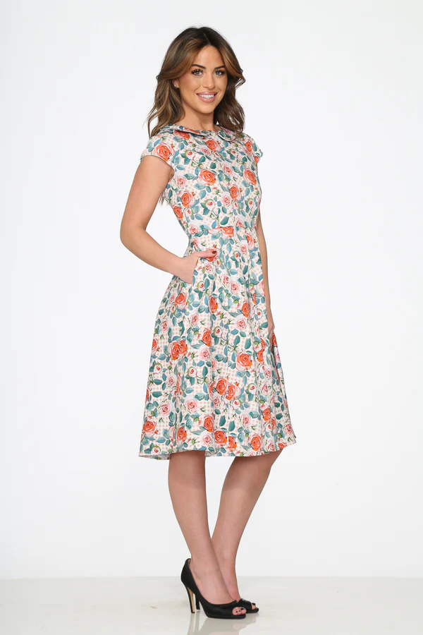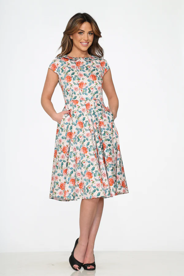 40s-50s Pink Floral Swing Dress