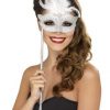 Tags: baroque fantasy mask, costume room, costumeroom, kostume room, kostumeroom, mask, masquerade mask, smiffys, white masquerade mask with stick