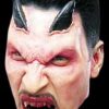 A pair of black latex prosthetic demon horns. Must be applied with spirit gum or pros-aide. Use latex and makeup to make it more realistic. Use spirit gum remover to remove appliance. You can get all products at The Kostume Room.