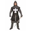 There was no one uniform for the noble knights of yore. This Black Knight Mens Costume recreates the striking look of a mail-armored warrior ready for combat, making it a perfect choice for tourneys, jousts, crusades, and almost any other medieval event! The costume consists of a shirt-style tabard that features faux chainmail sleeves and an attached belt about the waist. Emblazoned on the chest is a vibrant white cross. The costume also comes with a faux mail hood and matched pants. The costume does not include the knightly boots or the prop sword. With an oiled leather look, this Black Knight Mens Costume creates an armored look fit for any knight, while offering a light and comfortable fit that is perfect for casual wear at almost any medieval event.