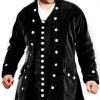 A Black colored pirate coat made from cotton velvet that has fully functional buttons. The captain coat has pockets and cuffs that have been decorated with buttons that add to the grace of the coat. The Pirates Captain De Lisle Black Velvet Coat is very well made and can easily withstand pirate re-enactments. The Pirates Captain De Lisle Black Velvet Coat would finish any pirate outfit as well as Medieval and Renaissance outfits. A pirates outfit is not complete without this gorgeous pirate captain coat.