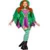 2 PC Crafty Spellcaster Costume includes velvet dress with iridescent tattered skirt and net gauntlet sleeve, lace…