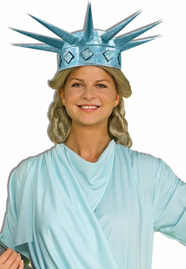 Miss Liberty tiara for adults stand tall with this lovely headpiece which truly reflects the spirit of the statue of Liberty. Delightful details: -glittery dot sequin fabric -sized for adults with adjustable Velcro closure at the back -padded for extra comfort -stiffened peaks. Easy on easy off for great effects!