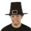 This ultra suede Pilgrim Hat is as deluxe novelty style perfect for your Thanksgiving reenactment this year! Top your puritan or pilgram costume with this hat featuring a tapered crown and flat brim trimmed with a classic grosgrain ribbon hat band and gold buckle.