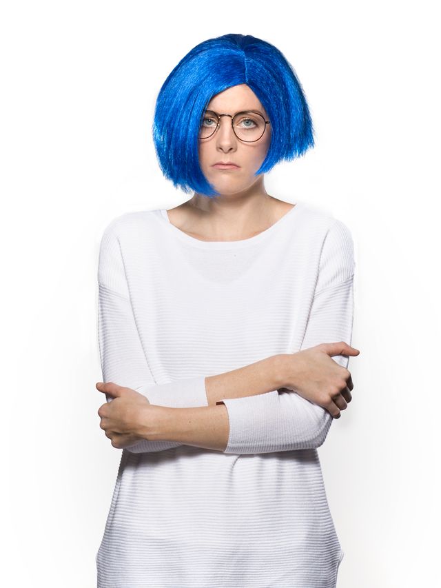 Bright Blue wig that resembles the Sad Wig from Inside Out