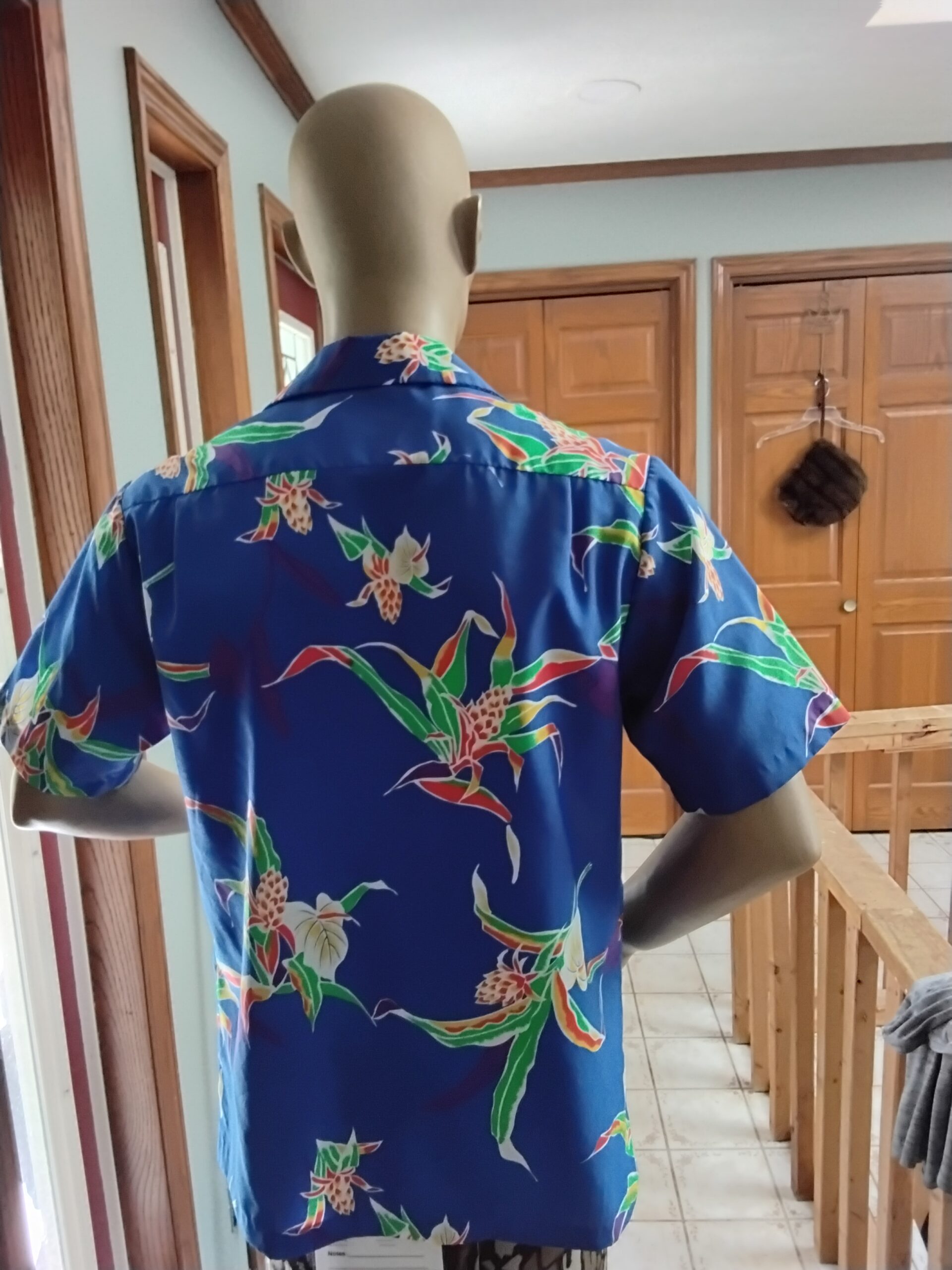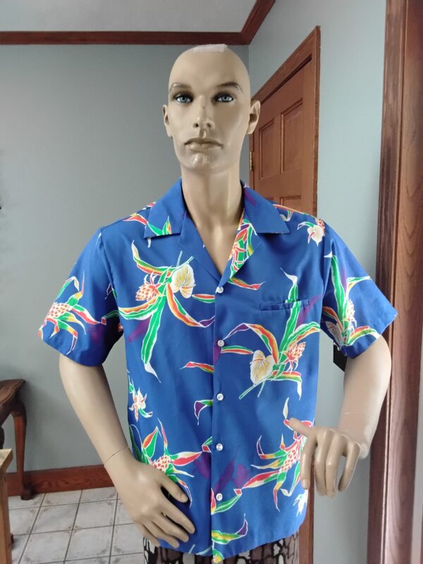 This Vintage Hawaiian Shirt by Hilo Hatties is a classic piece that captures the essence of Hawaiian style with its floral pattern and collared neckline. Made in Hawaii with rayon fabric, this lightweight shirt is perfect for travel or casual occasions during the summer and spring seasons. The 2X size with a chest measurement of 46 inches ensures a comfortable fit for men looking for a regular fit and a touch of vintage flair. The blue color and spread collar add a touch of character to this button-up shirt, making it a versatile and stylish addition to any wardrobe.