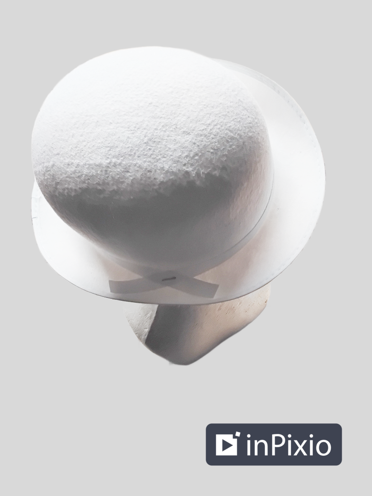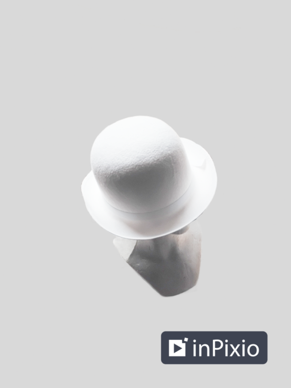 Used white derby or bowler hat. Measures 22 inches in circumference or size Medium. The hat is made of a durable permaflex fabric The hat has a white hat band. It is in excellent condition and no stains