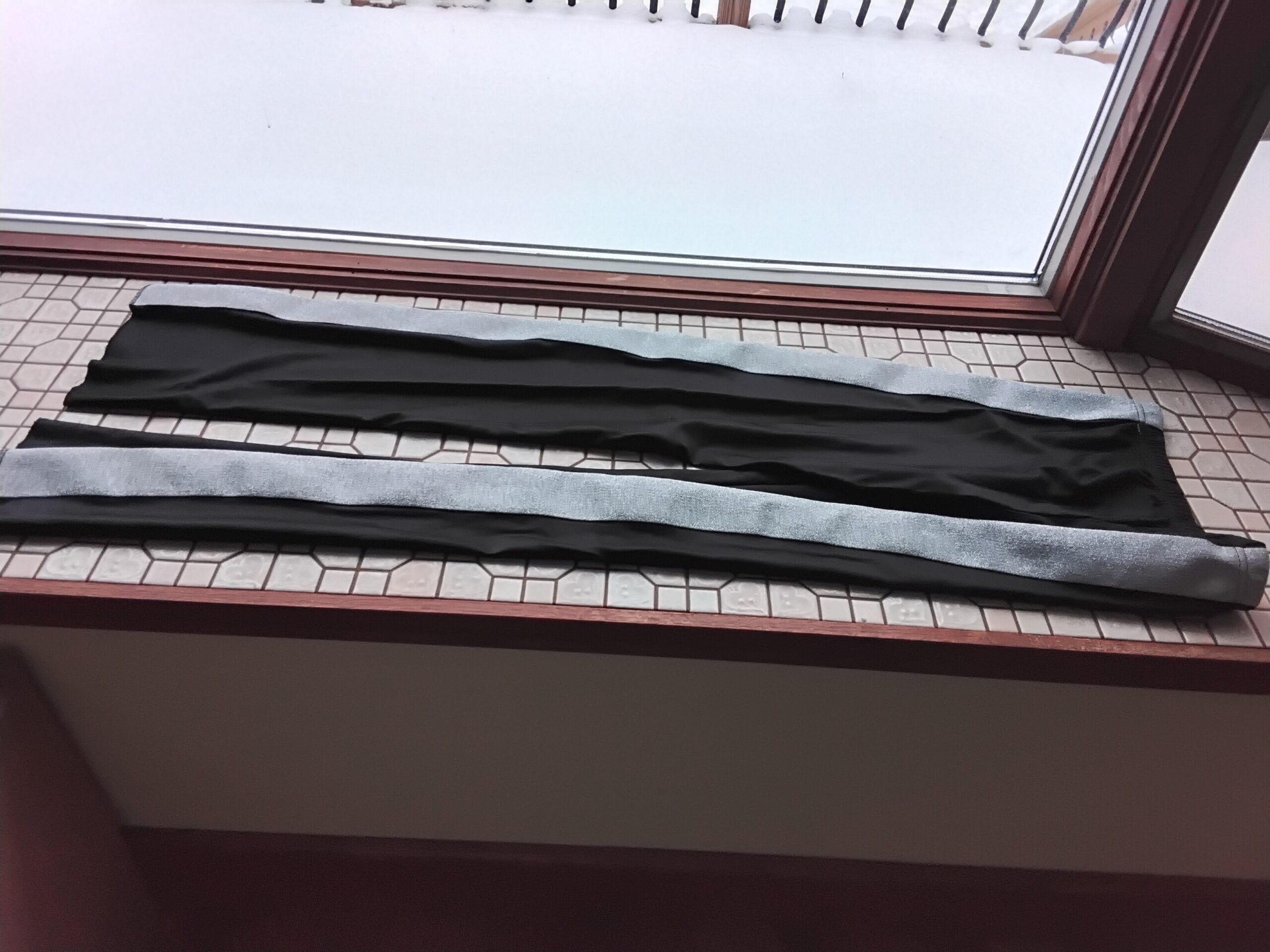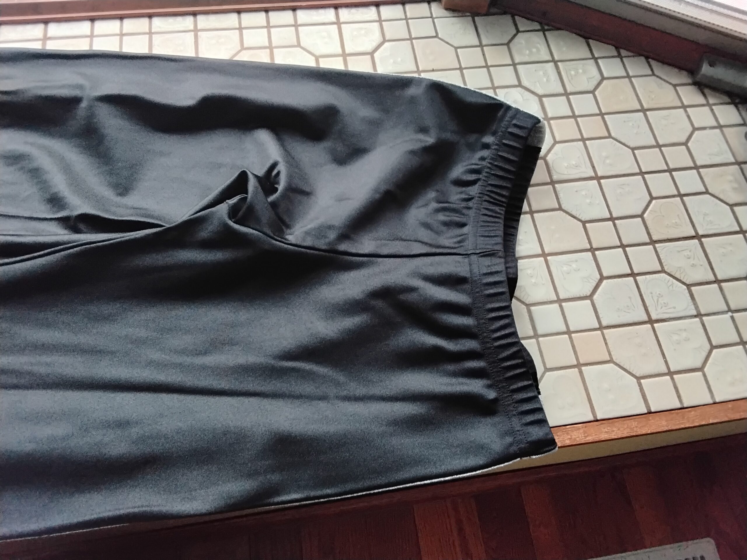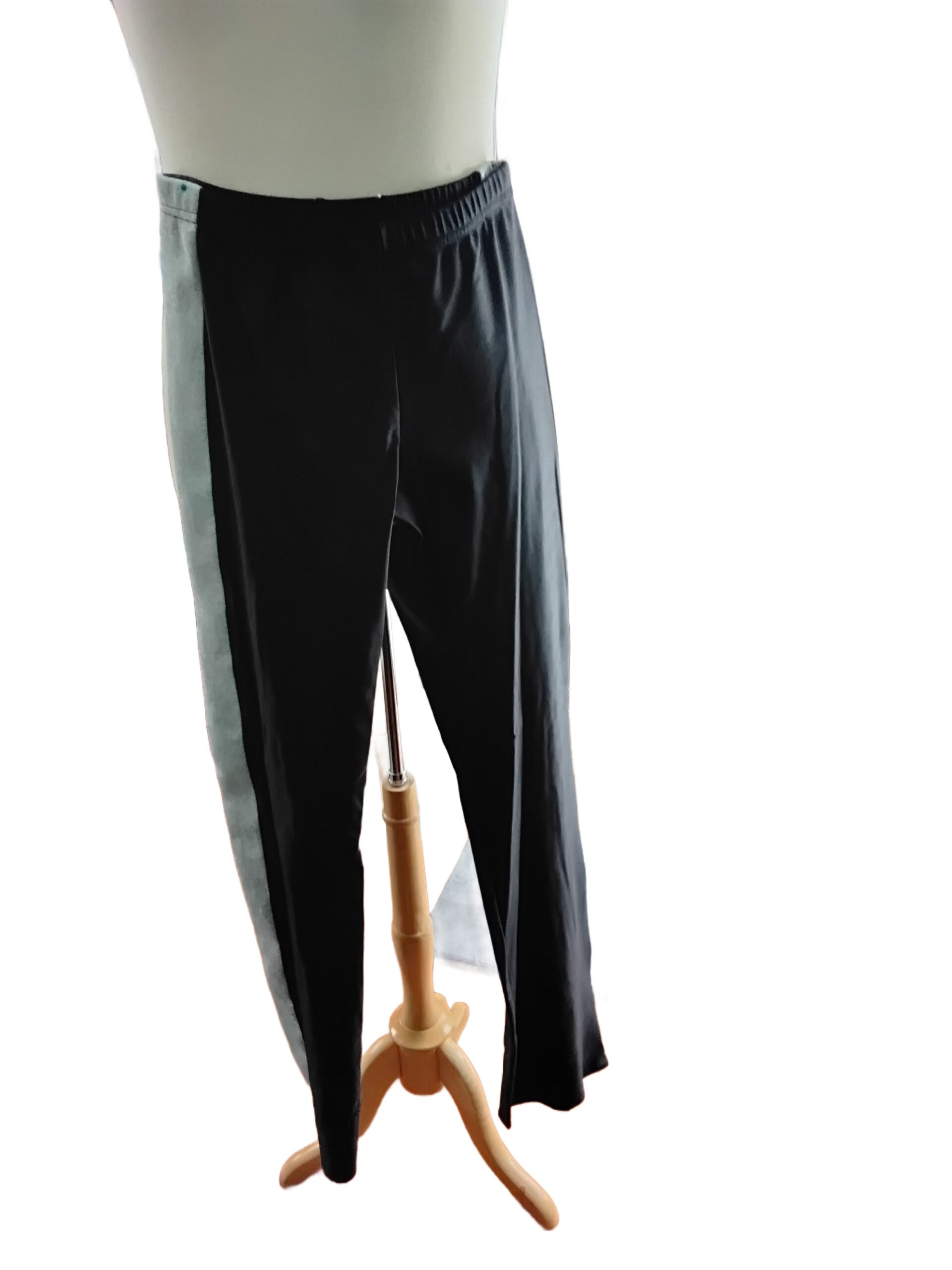 Pants are made of nylon and spandex. They are women’s warm up pants for cheerleading,running, or whatever you would want to wear them for. Pants are black with a silver glitter lurex strip on each side of the pants with a flare in the leg. I have different sizes of these pants. They are made in the USA by Varsity Spirit. These are made really well and great for fall and winter season.
