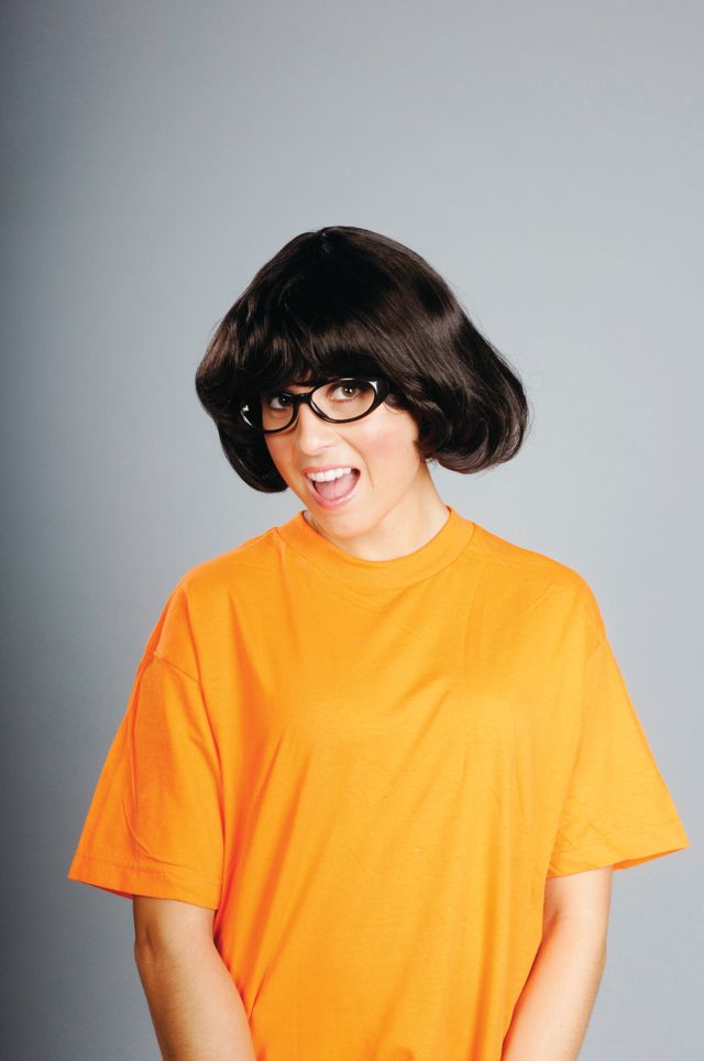 Wylma Wig is a reminiscent of Velma from Scooby Doo. Length is medium and a 60s inspired shape. The color is dark brown