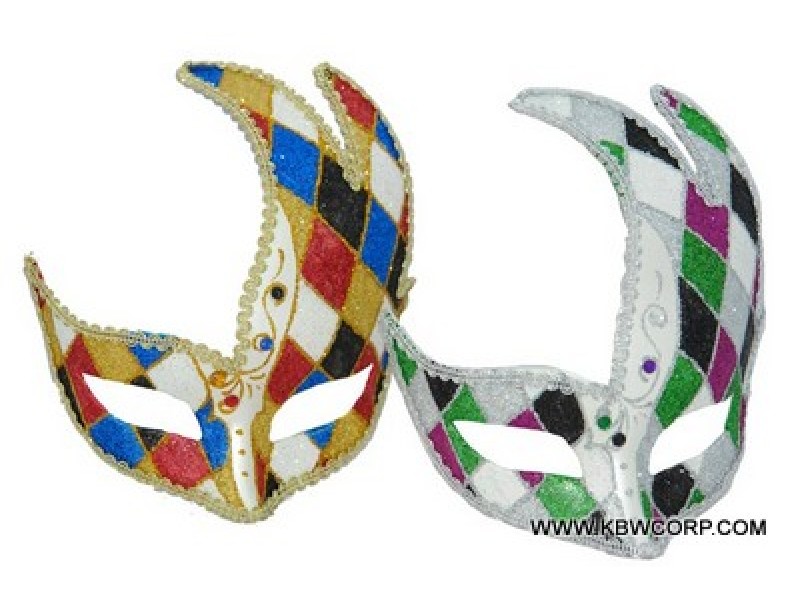 Venetian mask in gold with assorted colors or silver in assorted colors