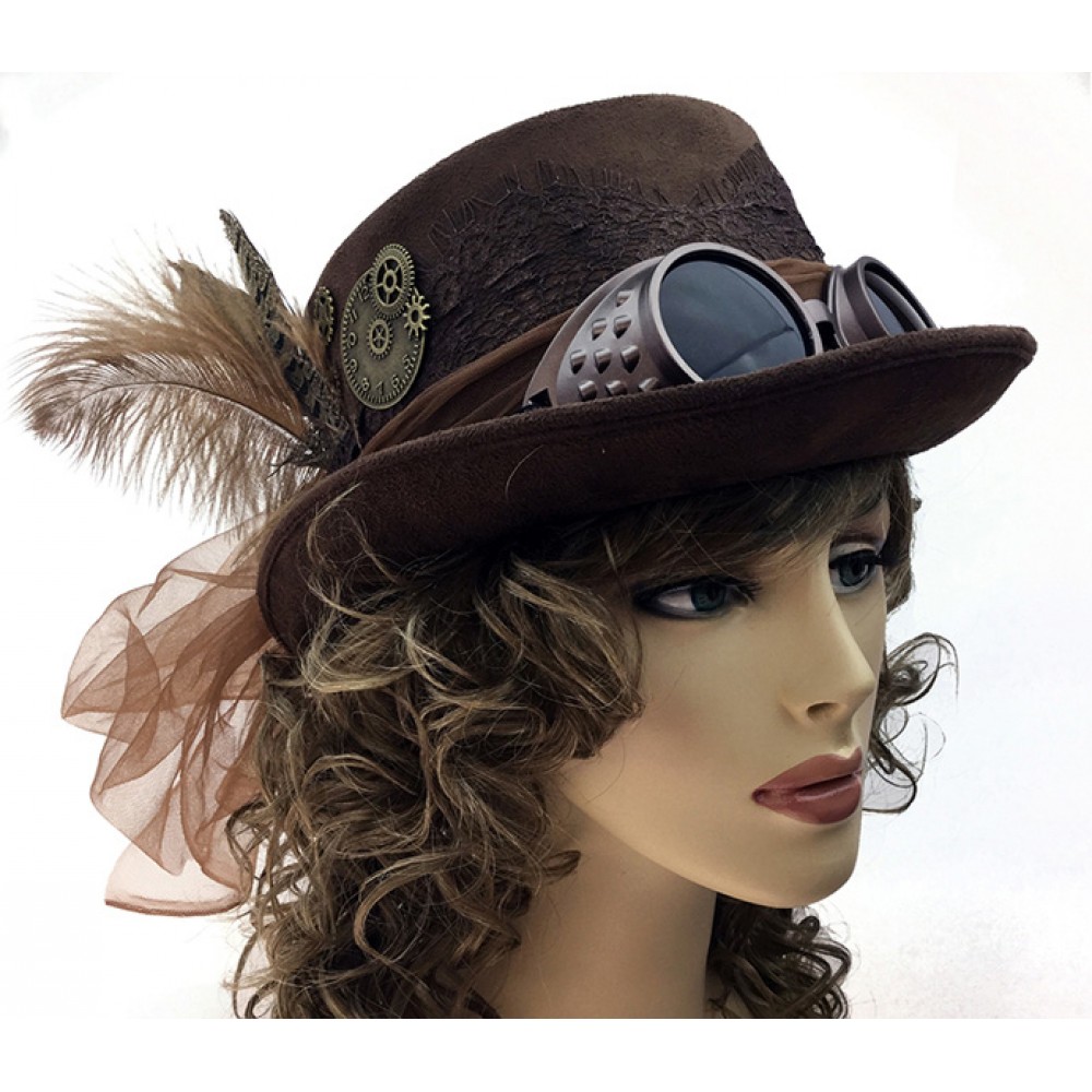 Steampunk hat w/feathers and gears