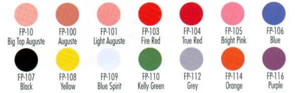 | Color | Big Auguste, Black, Blue, Bright Pink, fire red, Grey, Kelly Green, ogre green, Orange, Purple, True Red, Yellow, Wicked Green |