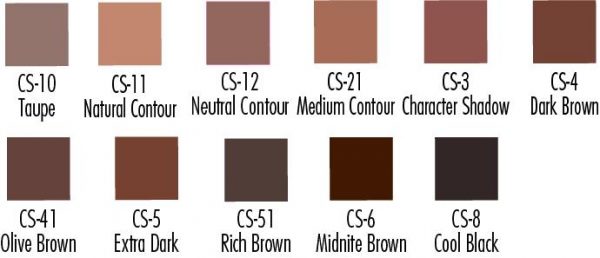 | Color | Character Shadow, Contour Brown, Cool Black, Dark Brown, Extra Dark, Medium Brown, Midnight Brown, Natural Brown, Neutral, Olive Brown, Rich Brown, Taupe, Original Character |